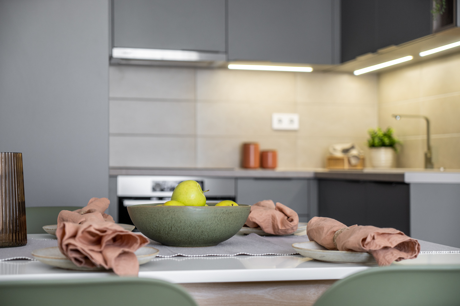 The pictures show one of the sample apartments, not the actual apartment!